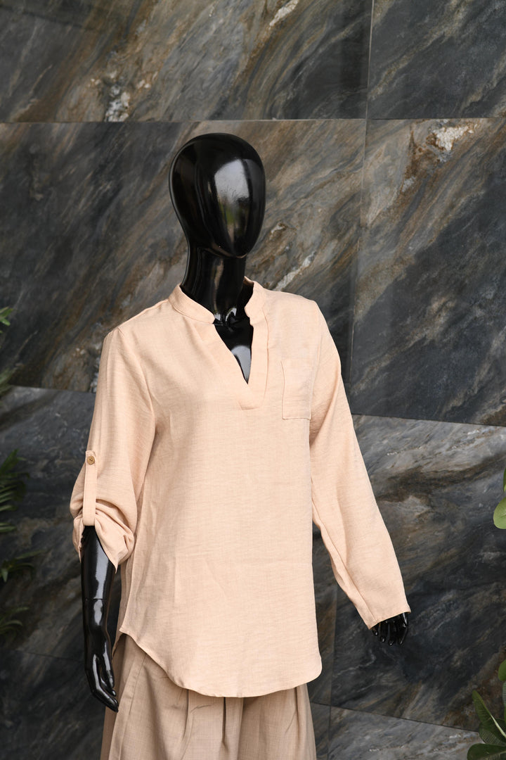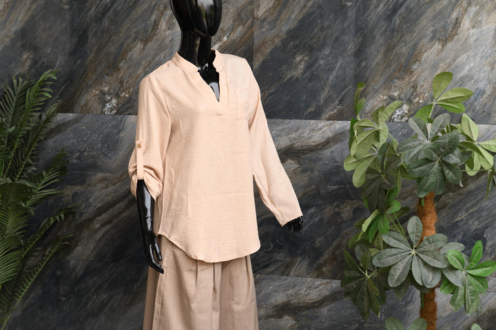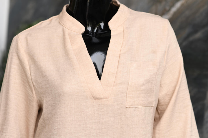 This distinctive combination makes our clothing versatile breathable enough for warmer days, yet structured and stylish enough to transition seamlessly into cooler evenings.