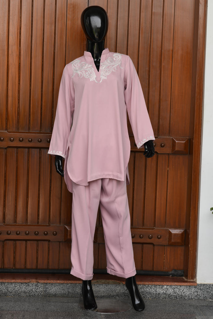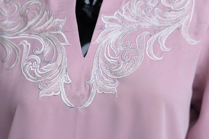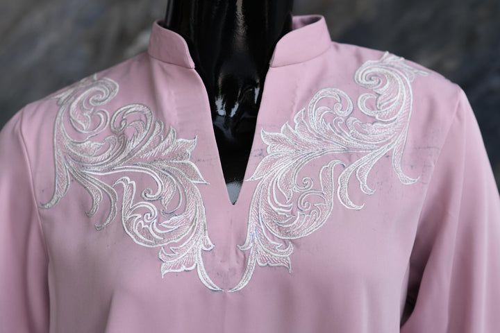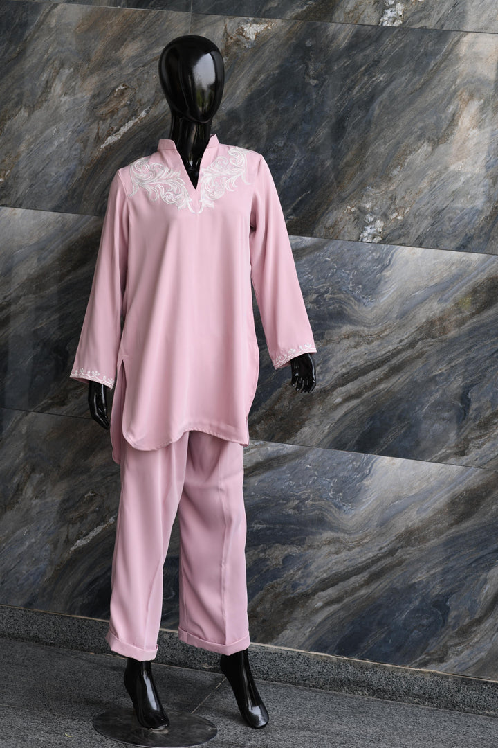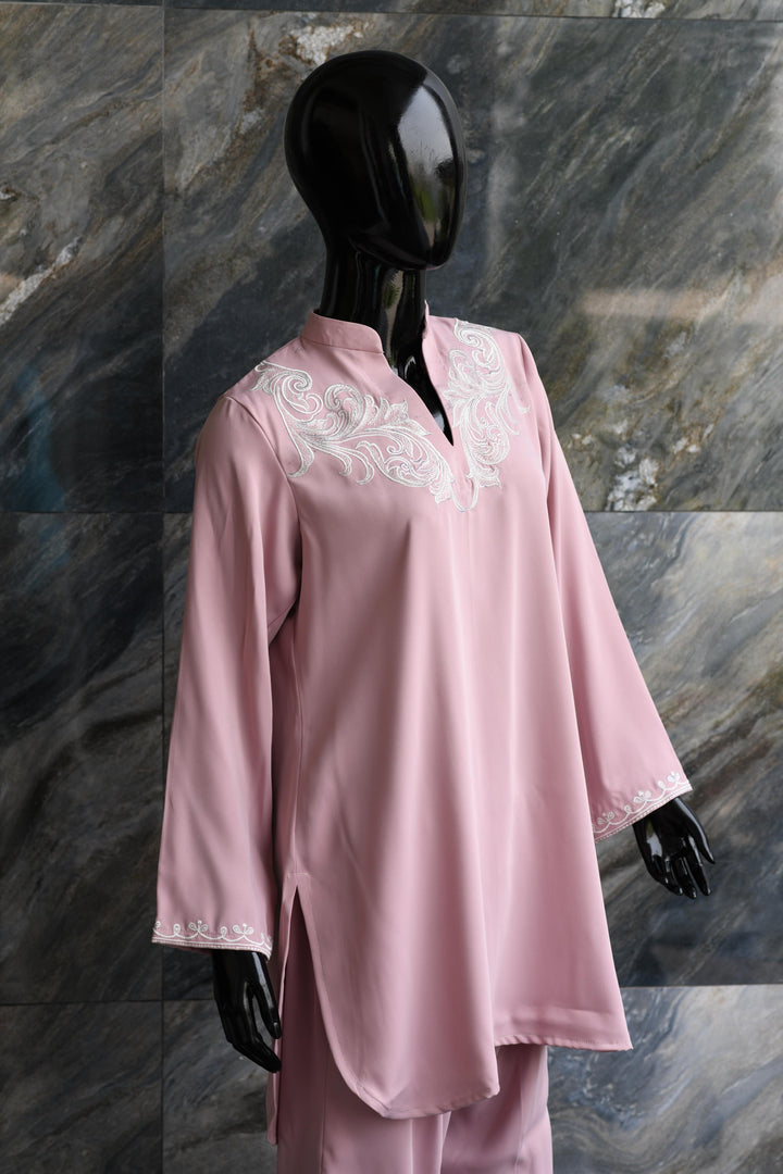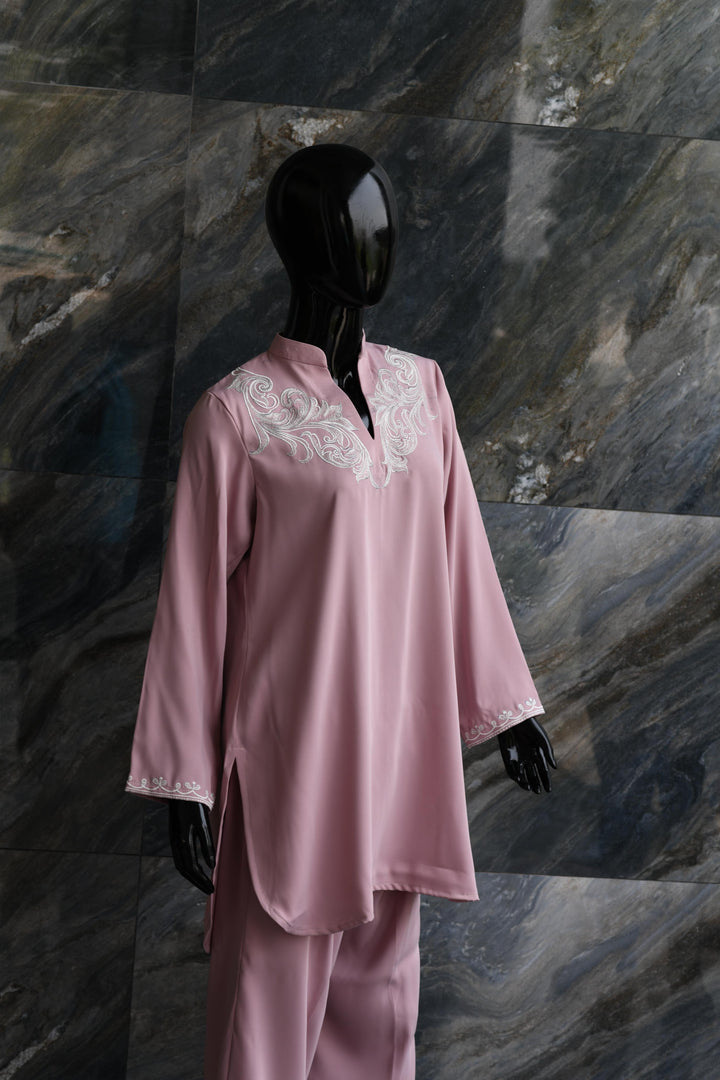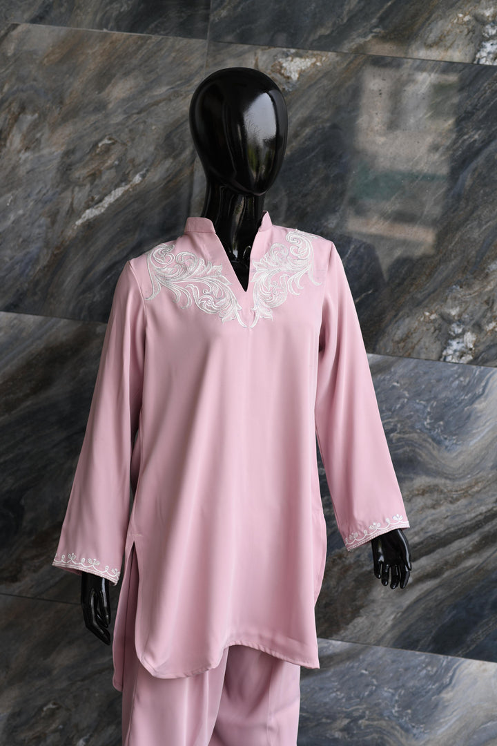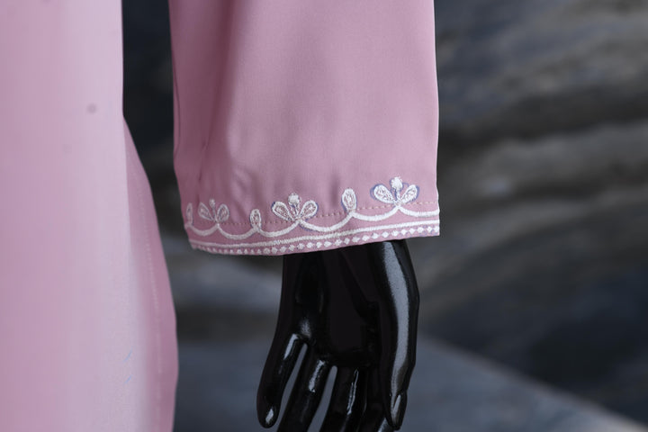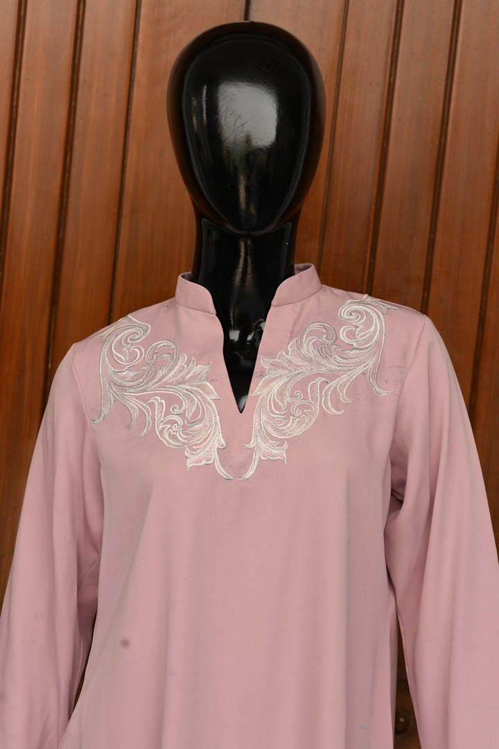 Pink With Fawn Embroidery On Neckline And Sleeves