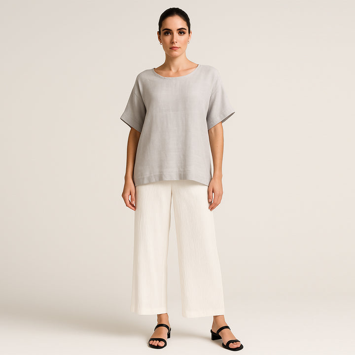 This distinctive combination makes our clothing versatile breathable enough for warmer days, yet structured and stylish enough to transition seamlessly into cooler evenings.