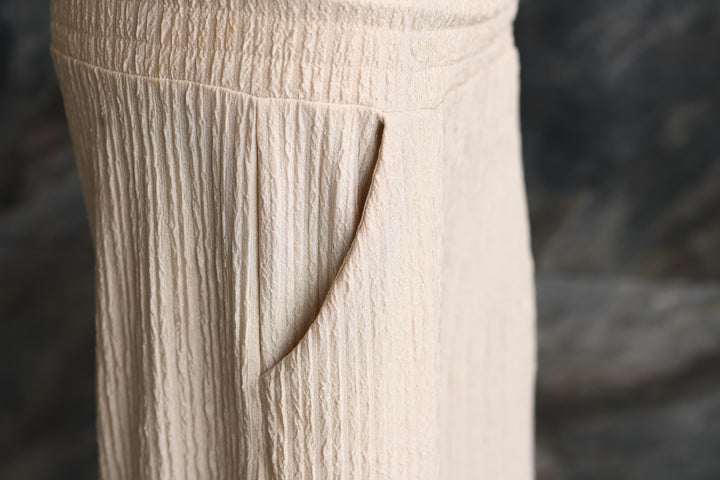 This distinctive combination makes our clothing versatile breathable enough for warmer days, yet structured and stylish enough to transition seamlessly into cooler evenings.