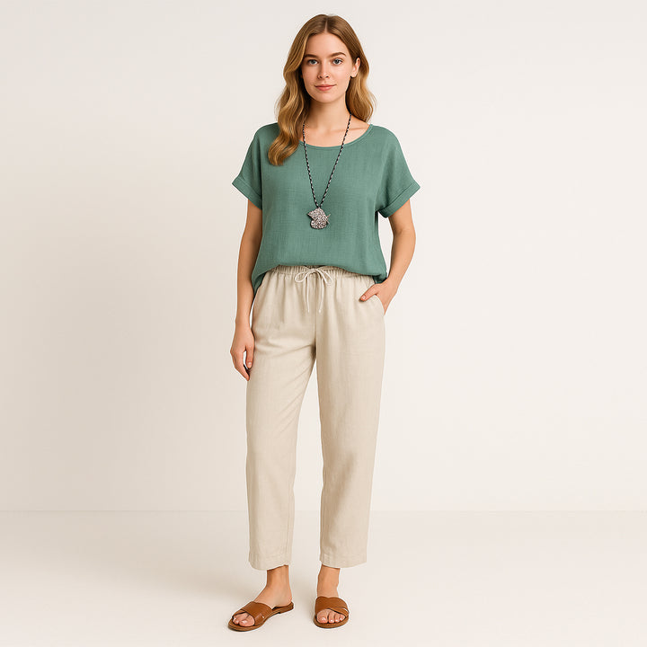 [☀️ Summer Perfect] This is the ideal tee for those hot summer days when you want to look cute but stay comfy. It's lightweight and breathable, so you won't feel like you're melting. Plus, the pleated sleeves add a touch of sophistication without being too extra.